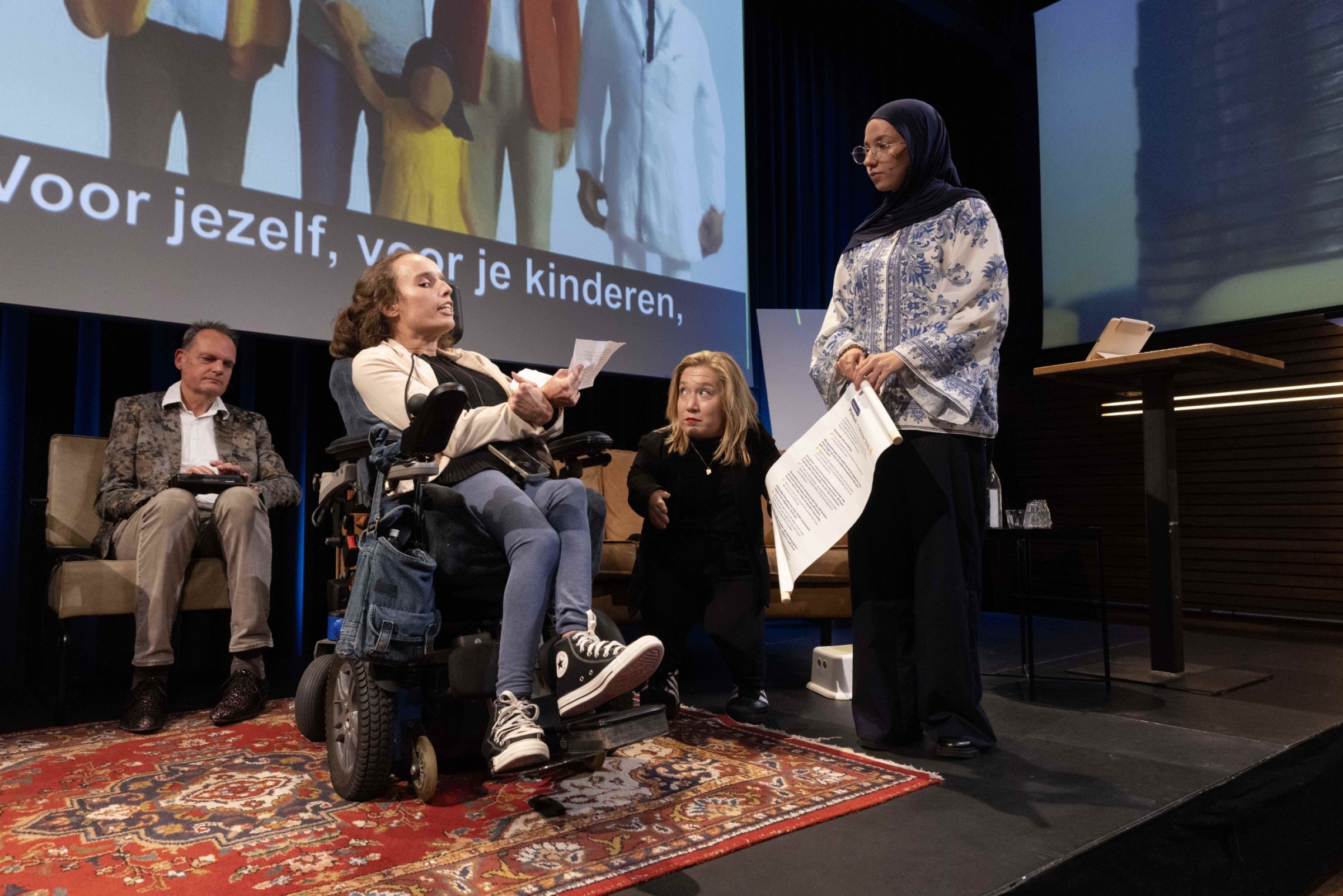 Tijdens deze avond stonden indrukwekkende ervaringsverhalen van patiënten centraal. Op basis daarvan gingen (kandidaat-)Kamerleden met patiënten, elkaar en het publiek in gesprek over de oorzaken en gevolgen van de stapeling van zorgkosten, én over mogelijke oplossingen.