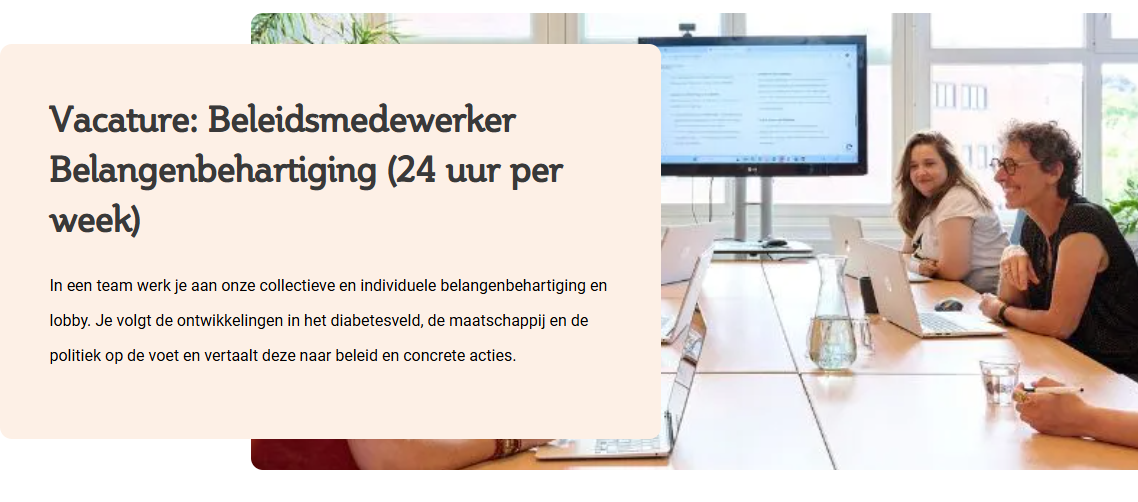 - Diabetesvereniging Nederland zoekt een Beleidsmedewerker Belangenbehartiging voor 24 uur per week