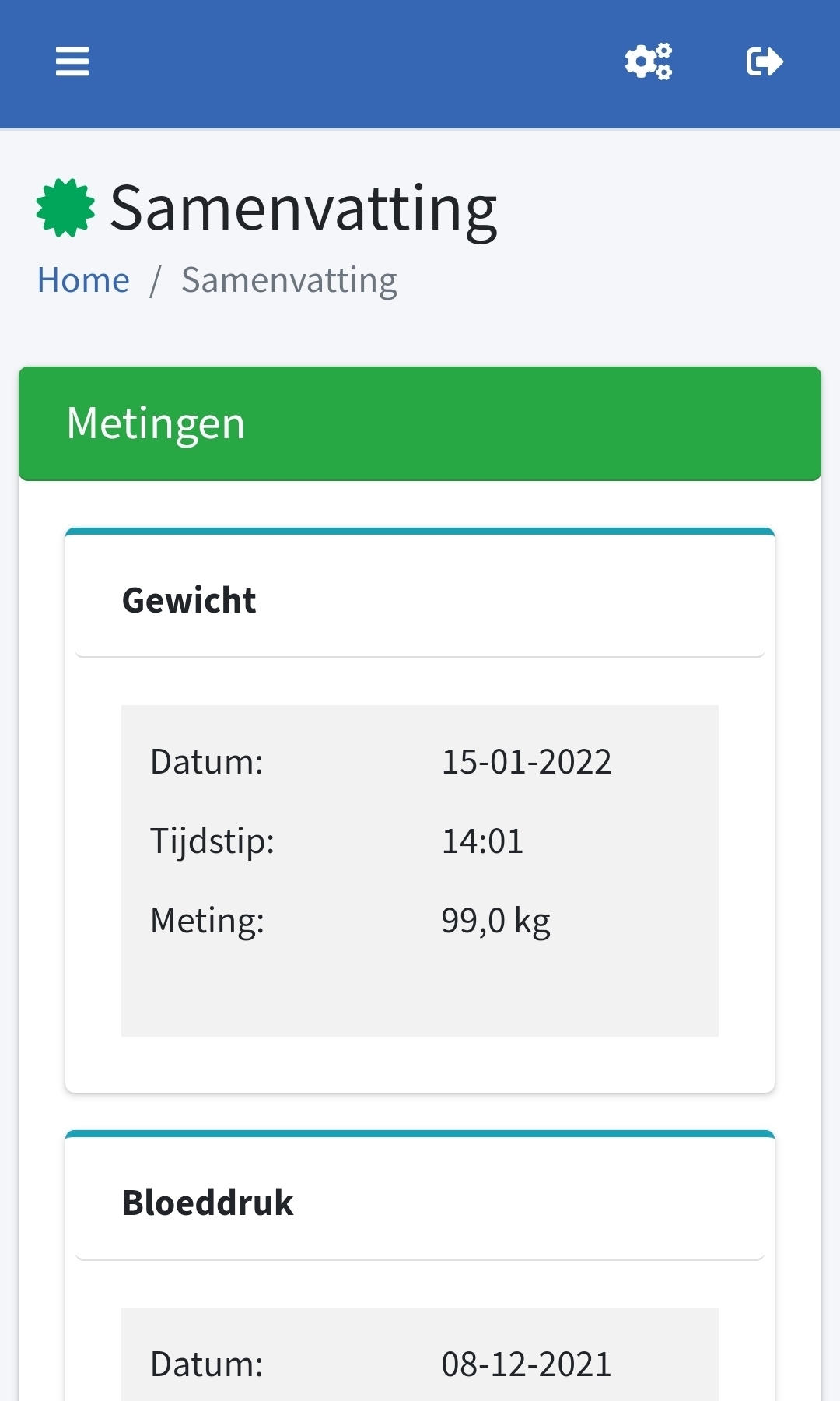 Aantal verbrande calorieënBeweging en sportBloeddrukBloedsuikerGewichtHartslagLichaamstemperatuurZuurstofsaturatieExtra mogelijkheden