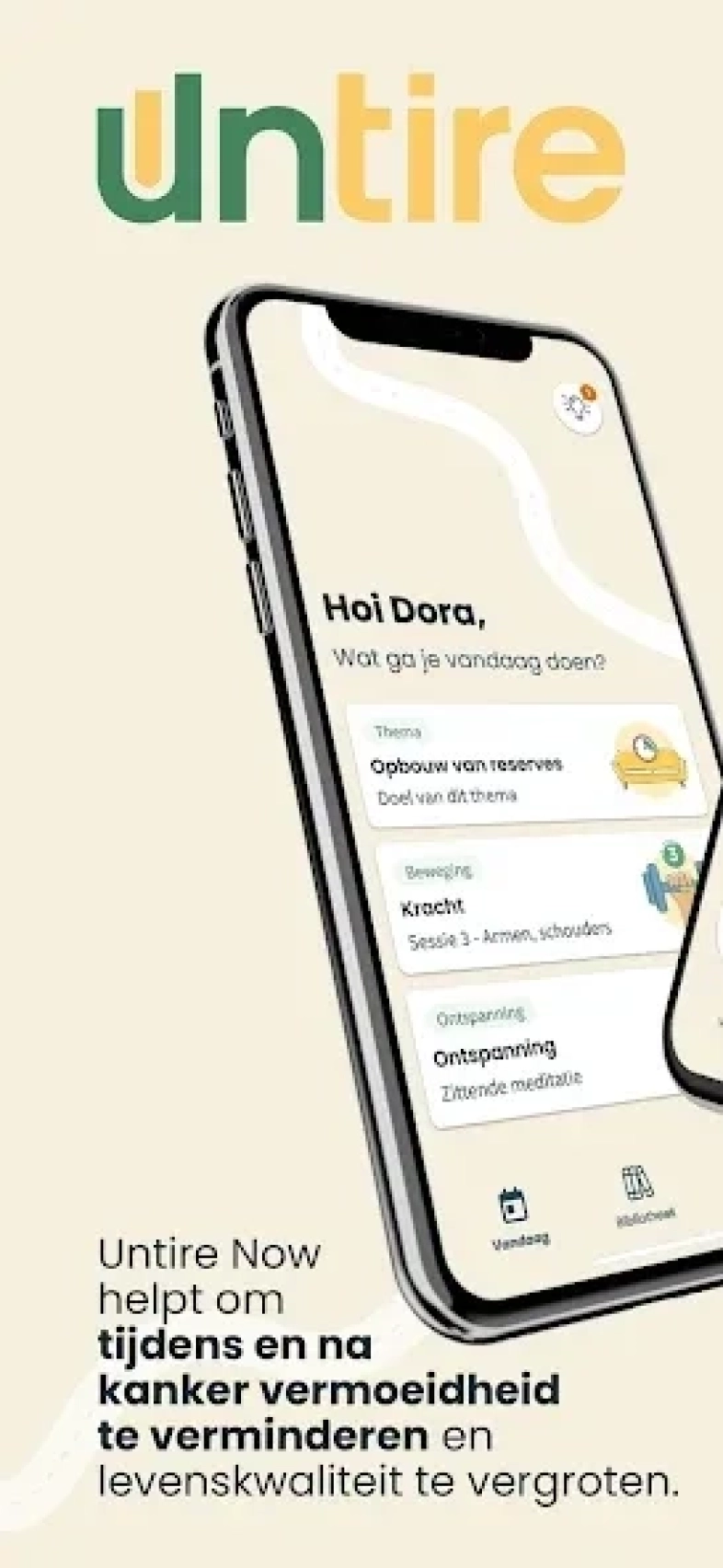 De Untire Now app helpt jou bij vermoeidheidsklachten bij kanker. De app is wetenschappelijk bewezen en ontwikkeld samen met artsen en patiënten.